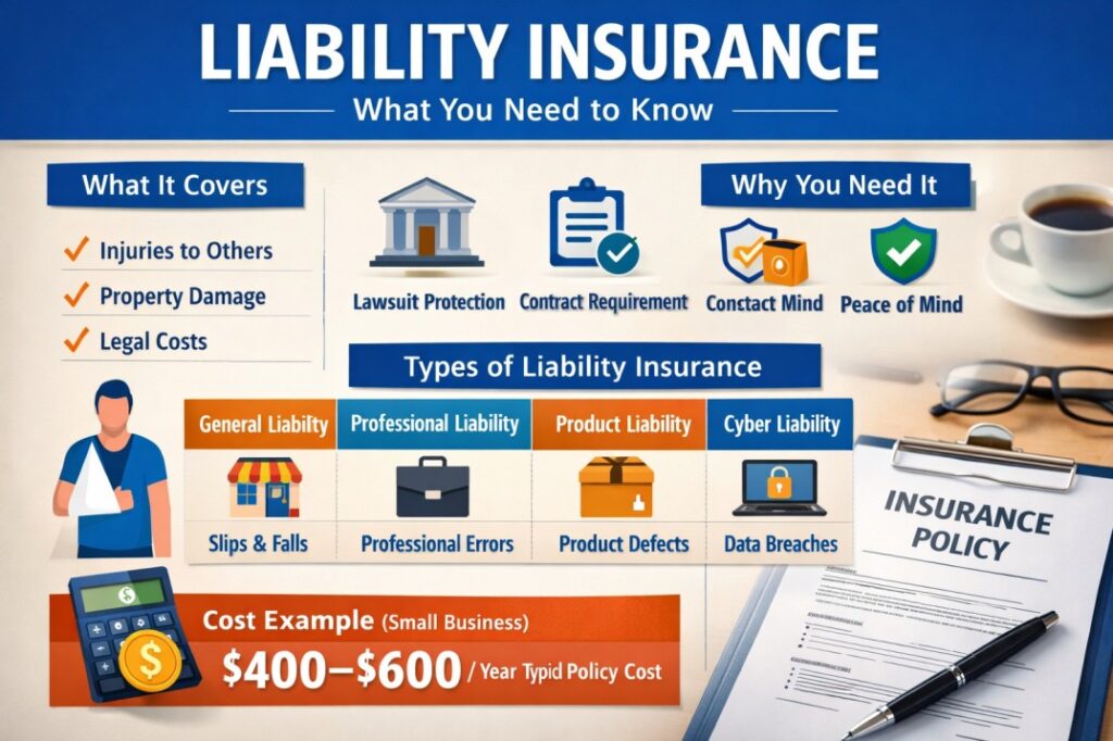 - You can be sued by customers, clients, or bystanders. A slip at your café, a negligent professional opinion, or a product that harms a buyer can all trigger claims. Different liability policies exist because different exposures exist. Investopedia+1